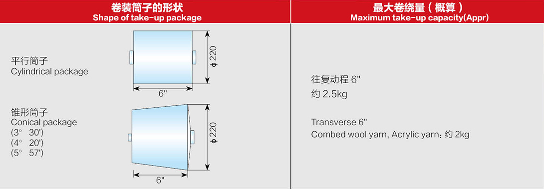 ◎卷取張力任意可調,可松弛卷繞,加工直接染色松式筒子。