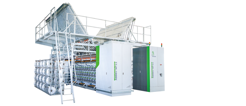 該機可將 POY 原絲(聚酯預取向絲),通過(guò)拉升和假捻 變形加工成具有低彈性能的假捻變形絲(DTY 滌綸彈力絲),同 時(shí)可配備網(wǎng)絡(luò )絲加工。